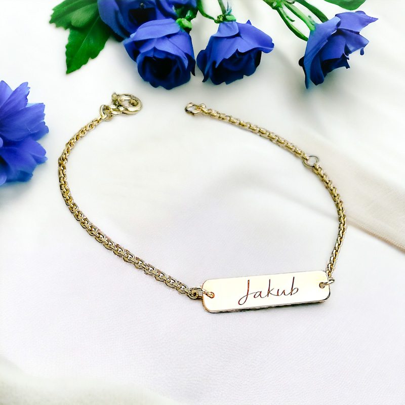 Úvod » Personalizované šperky → » DETSKÝ zlatý náramok s PLATNIČKOU