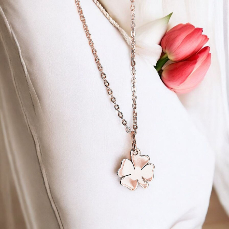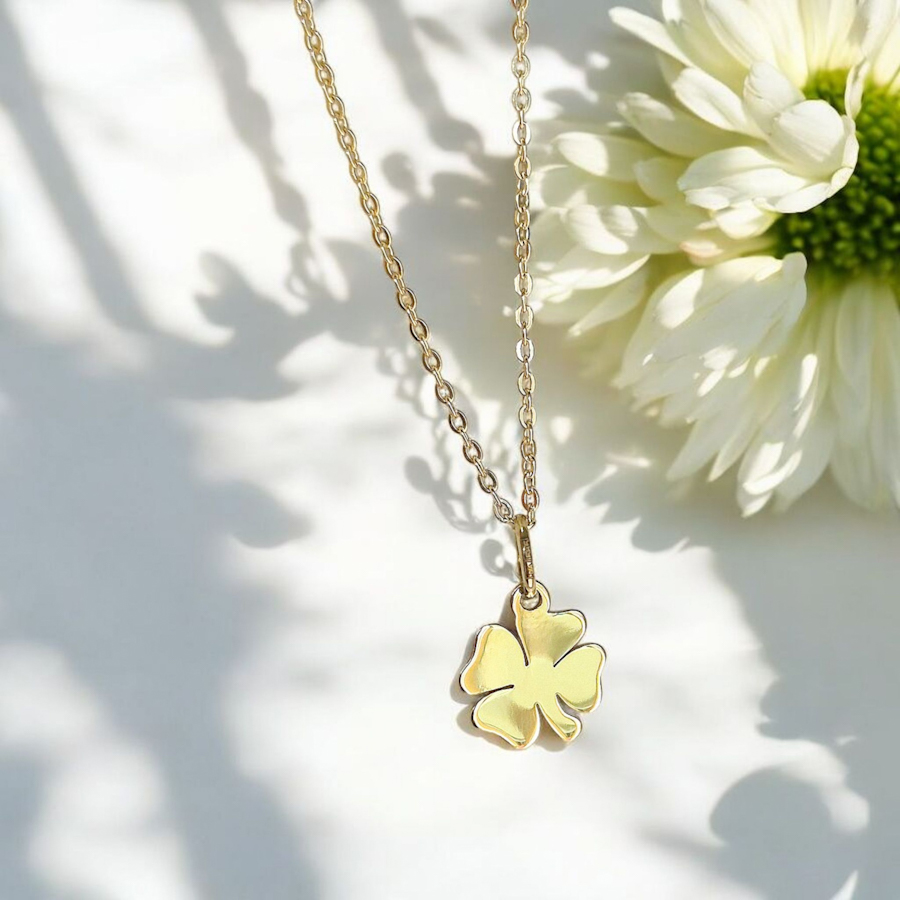 Detský zlatý prívesok v tvare štvorlístka je jemný šperk s obľúbeným prírodným motívom, ktorý prináša šťastie. Je vyrobený z kvalitného zlata v dostatočnej hrúbke pre možnosť gravírovania krátkeho dátumu, či inicialy. Je to milý darček pre slečny, deti, či bábätká. Vhodné je darovať ho pri narodení, oslave narodenín,  či pri významných životných príležitostiach, ako je ukončenie umeleckej školy, či pri skvelých športových výkonoch. Tetno milý prívesok spája symboliku prírody s eleganciou detského šperku.