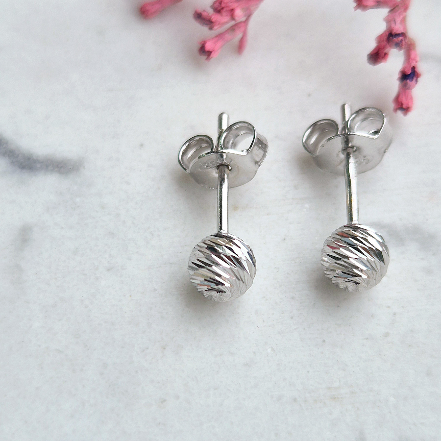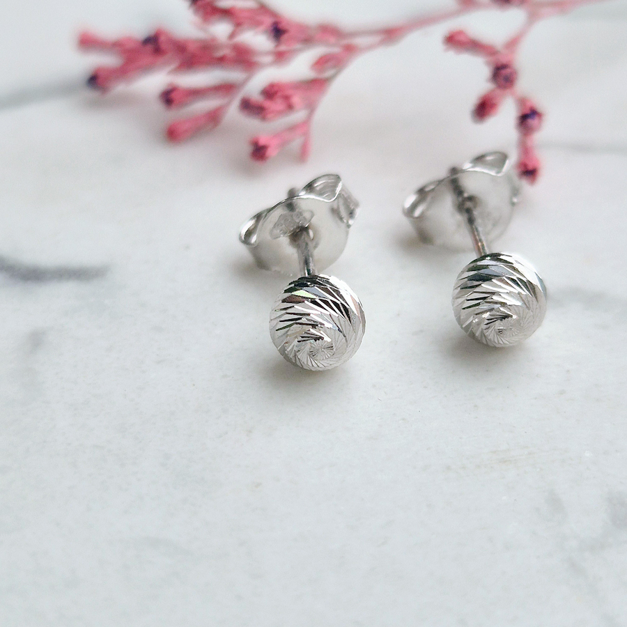 Úvod » Zlaté 14k šperky → » Náušnice napichovacie z bieleho zlata gravírované guličky