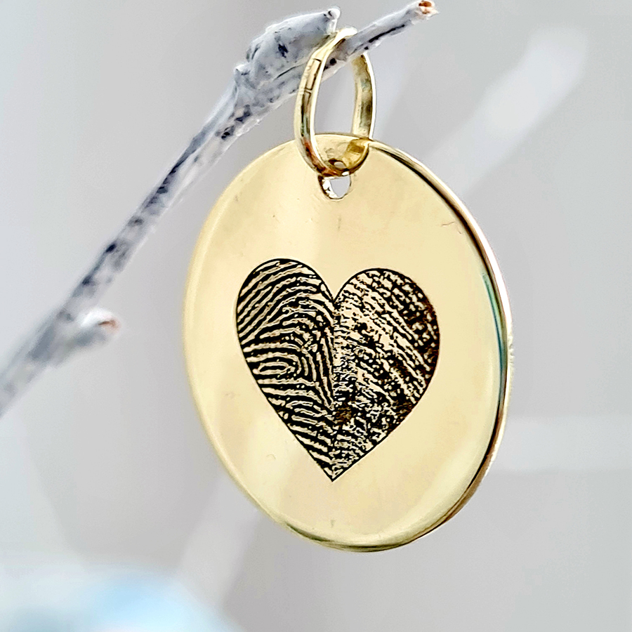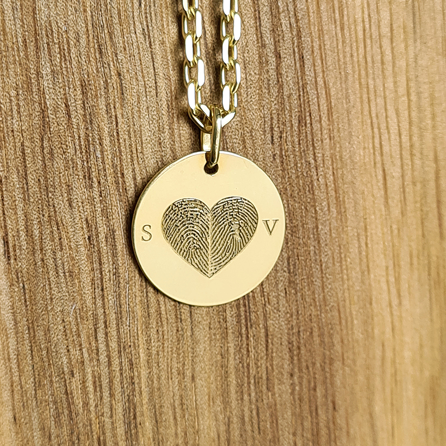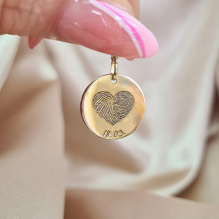 Zlatý prívesok v tvare kruhu – jedinečný personalizovaný šperk s gravírovaním odtlačkov