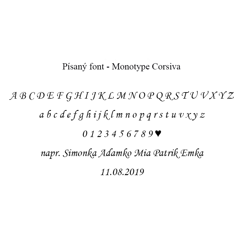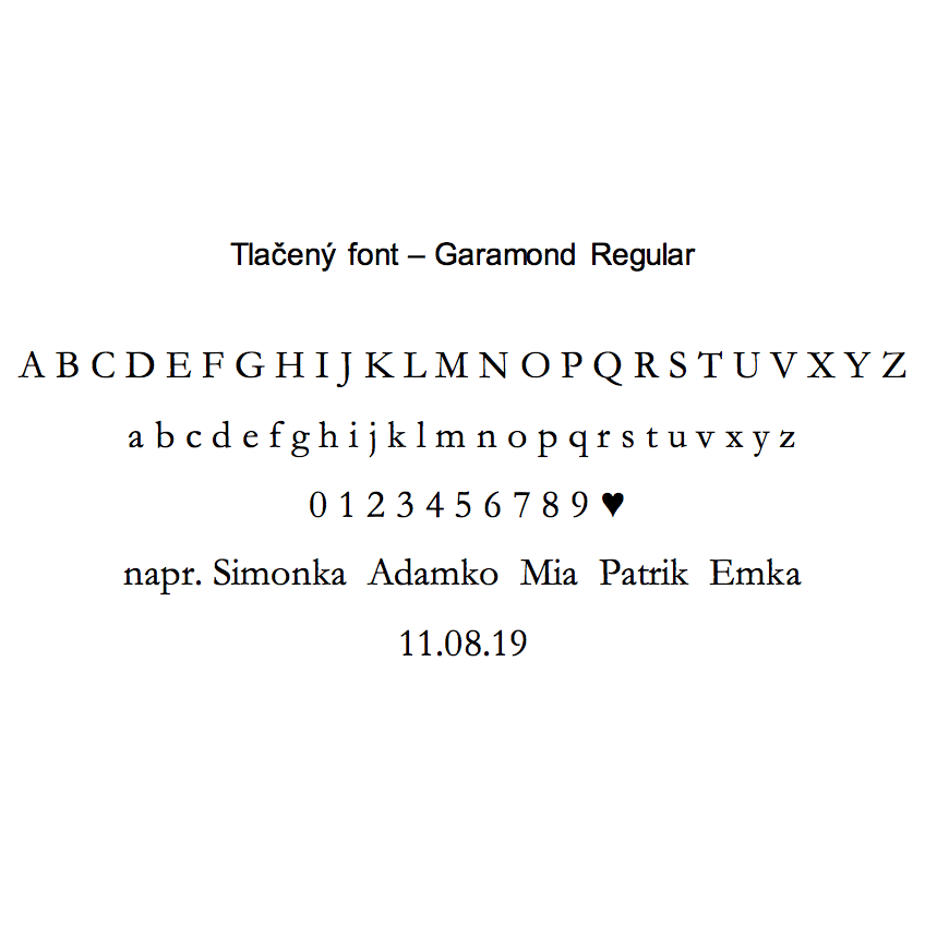 Iniciály  napíšte prosím do poznámky pri objednávke. Inciály budú gravírované v smere hodinových ručičiek a jednu alebo viac iniciál môžete nahradiť symbolom ♥ alebo ∞.  Máte možnosť výberu fontu gravírovania - jemnejší písaný font Nella Sue, hrubší písaný fornt Monotype Corsiva alebo športovejší tlačený font Garamond.  Je možné obojstranné gravírovanie šperku.
