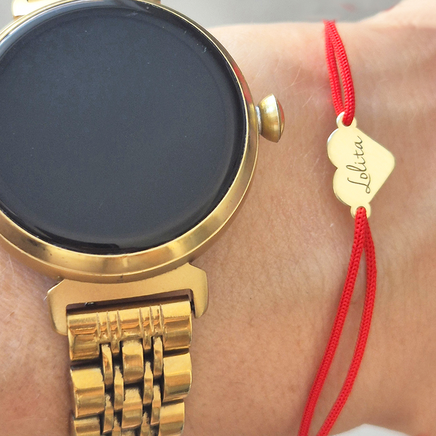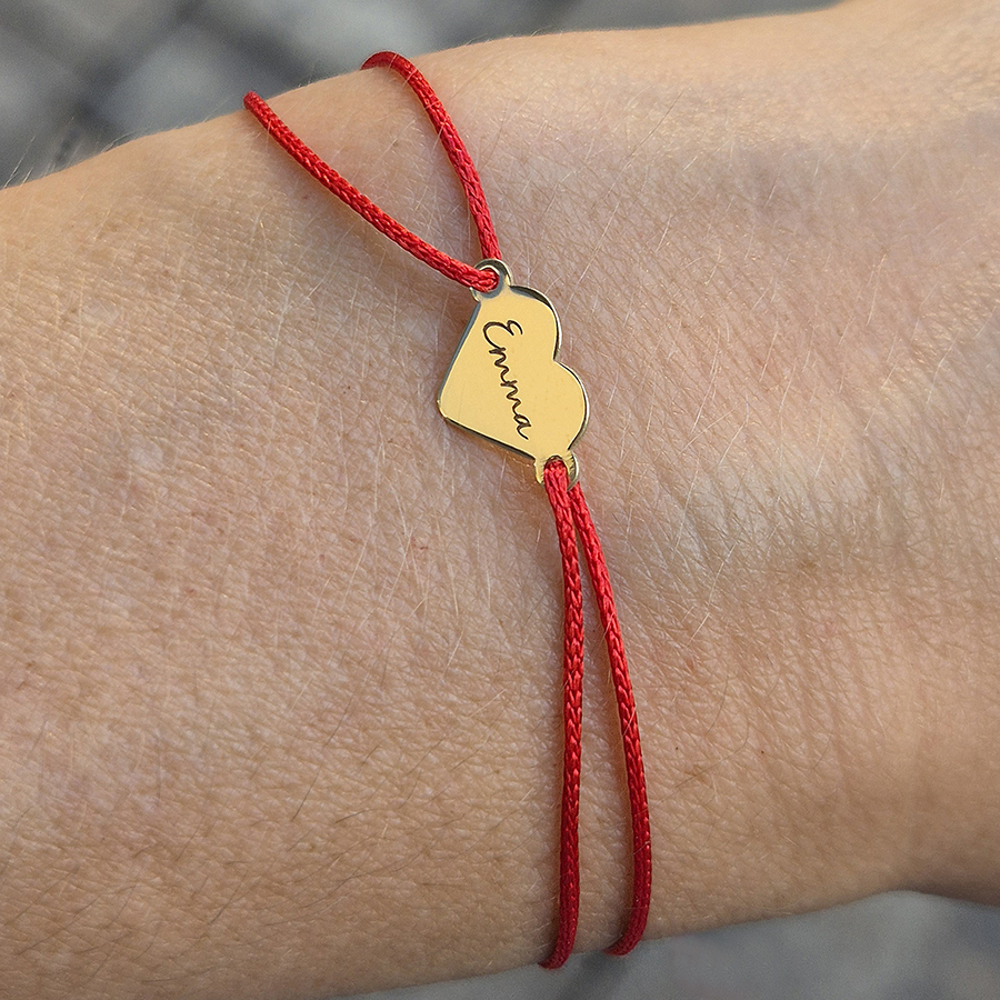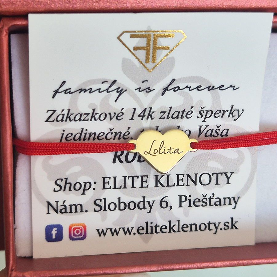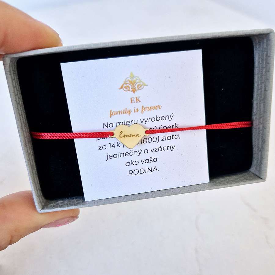 Zlatý náramok so srdiečkom na červenej šnúrke – personalizovaný šperk