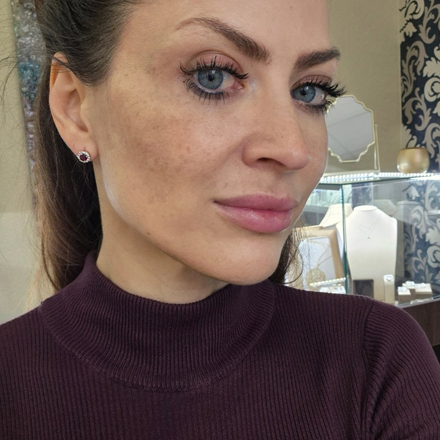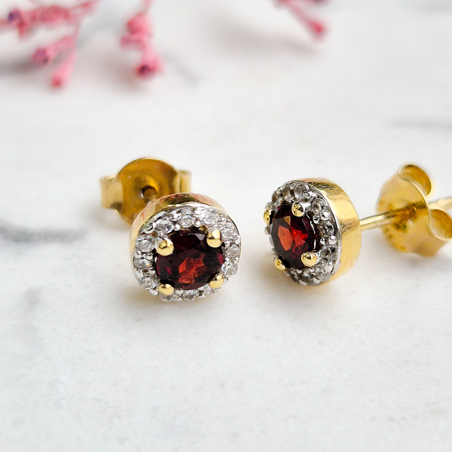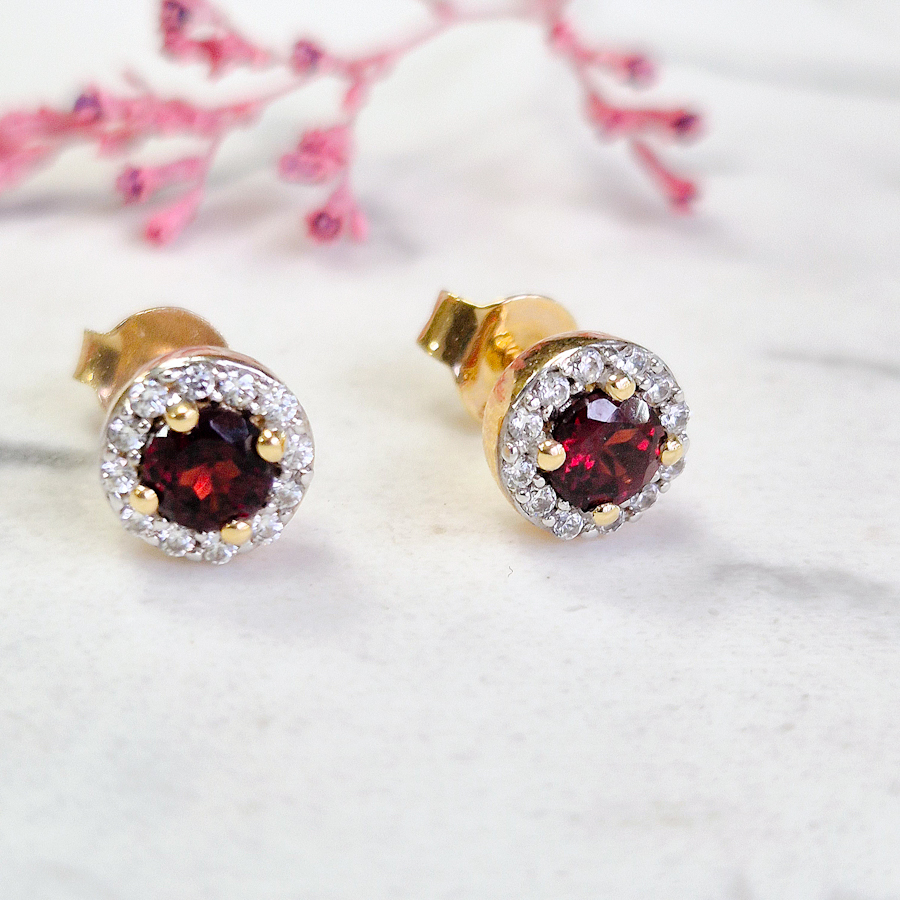 Úvod » Zlaté 14k šperky → » Zlaté napichovacie náušnice český GRANÁT a zirkóny