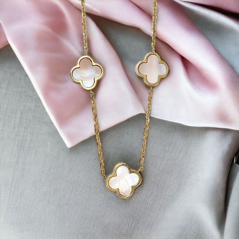 Zlatý náhrdelník s 3 štvorlístkami s perleťou