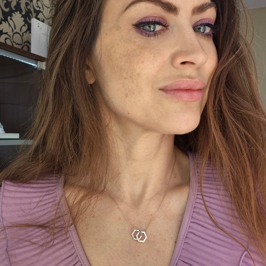 Úvod » Zlaté 14k šperky → » Zlatý náhrdelník s dvoma prepletenými a vykladanými kolieskami