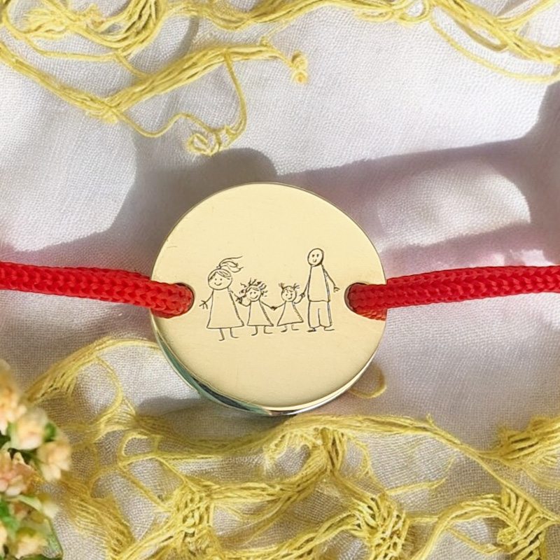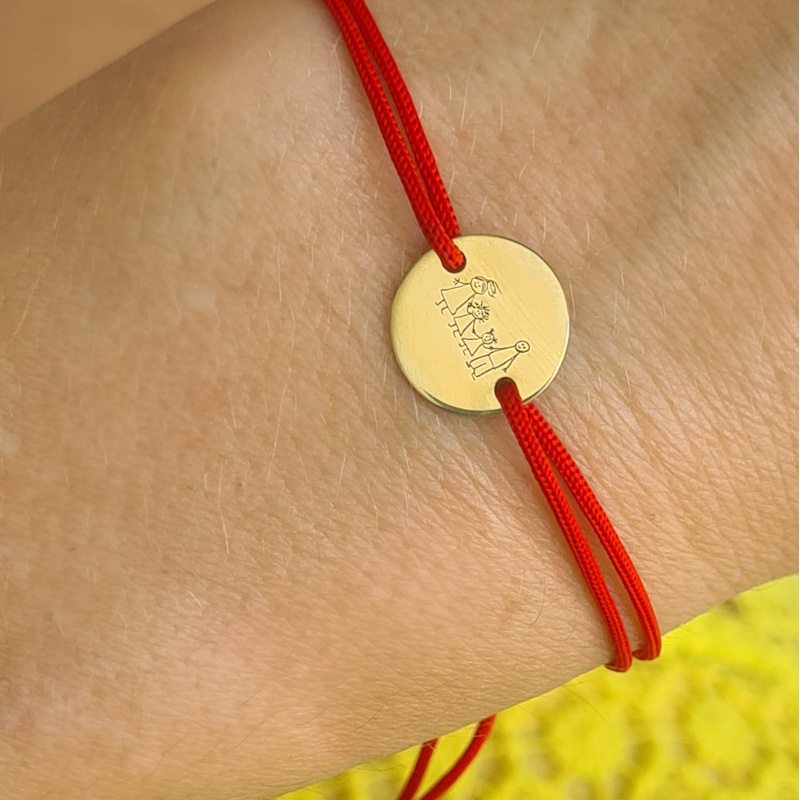 Novinka! Personalizovaný náramok na červenej šnúrke s ručnou kresbou rodiny.