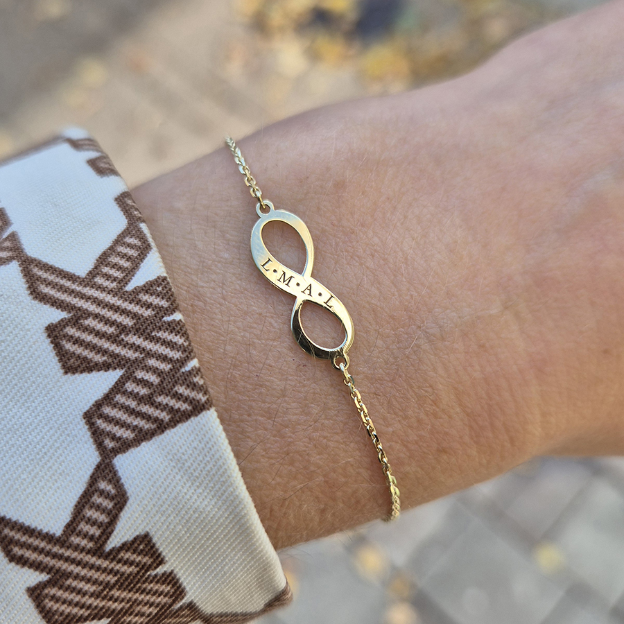 Na náramok si môžete nechať vygravírovať iniciály členov vašej rodiny, čím sa každý infinity náramok stáva jedinečným personalizovaným šperkom plným lásky a rodinného putá.