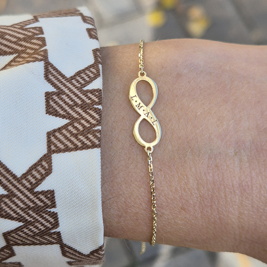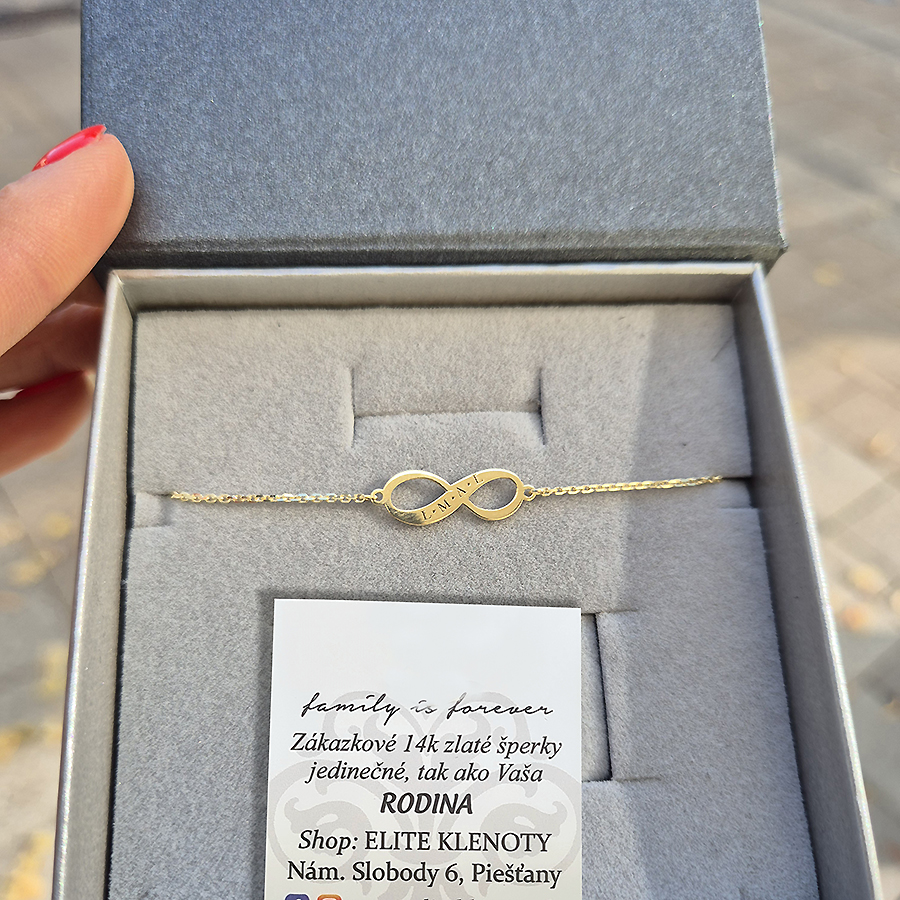 Zlatý náramok NEKONEČNO s INICIÁLAMI rodiny -14k zlato