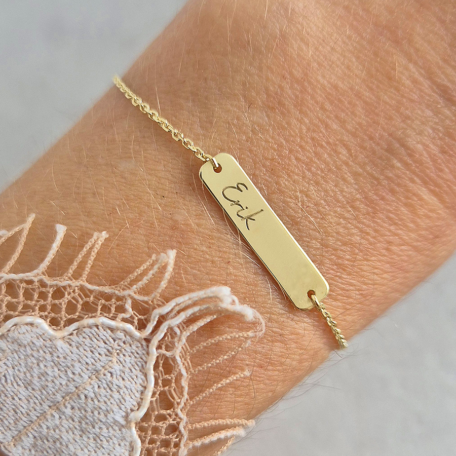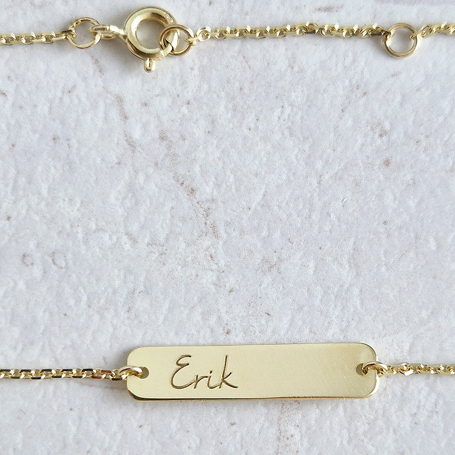 Úvod » PERSONALIZOVANÉ šperky → » Zlatý náramok PLATNIČKA s gravírovaným MENOM -14k zlato
