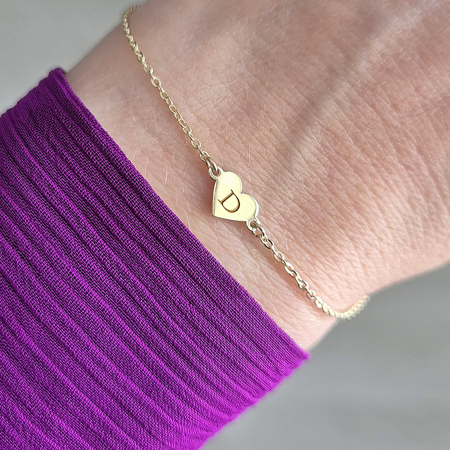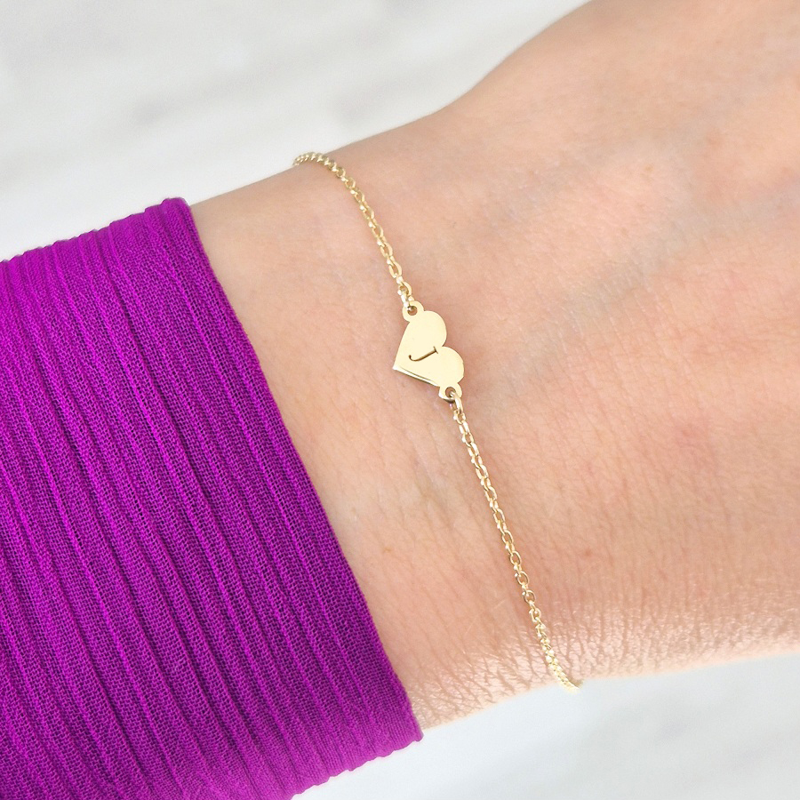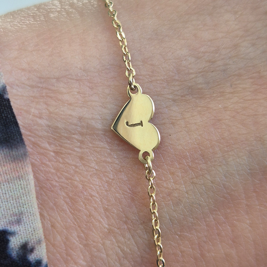 Úvod » PERSONALIZOVANÉ šperky → » Zlatý náramok s MINI SRDIEČKOM a INICIÁLOU -14k zlato