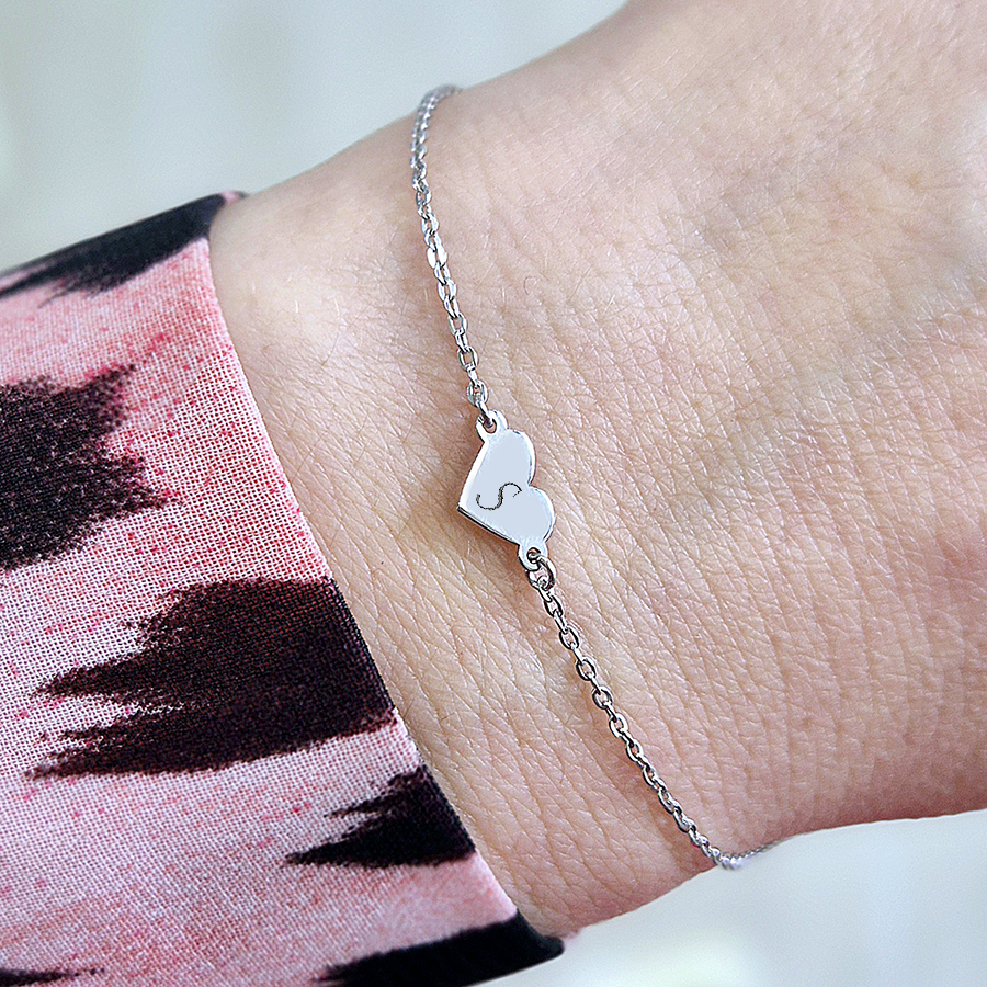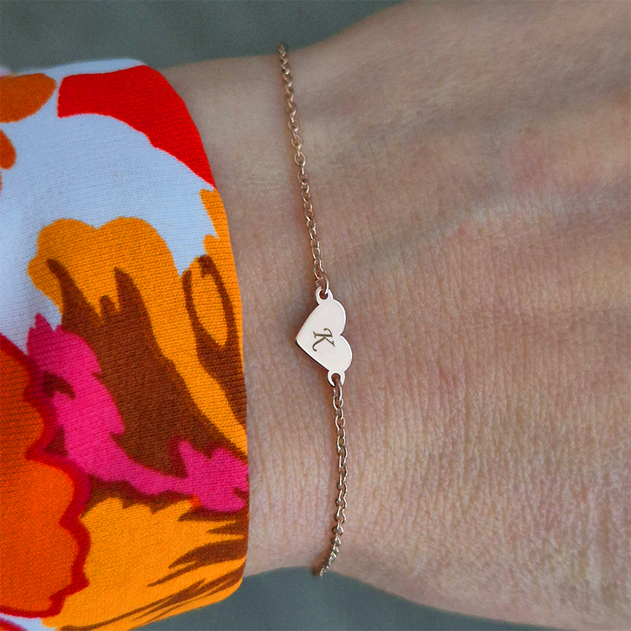 Objavte jemnosť a eleganciu s týmto personalizovaným náramkom so srdiečkom. Na srdiečko si môžete nechať gravírovať jednu alebo dve iniciály, čím vytvoríte šperk, ktorý bude nesúci váš osobný príbeh a výnimočný význam.