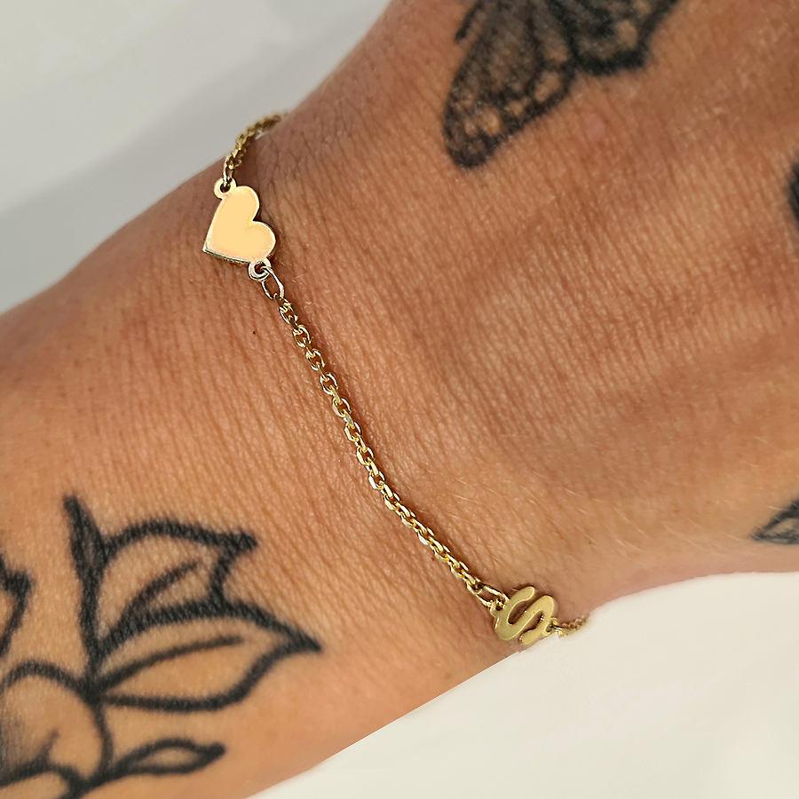 Objavte krásu v jednoduchosti s týmto personalizovaným náramkom s písmenkom a srdiečkom. Jemný a štýlový šperk je ideálny na vyjadrenie lásky, priateľstva alebo osobného puta.