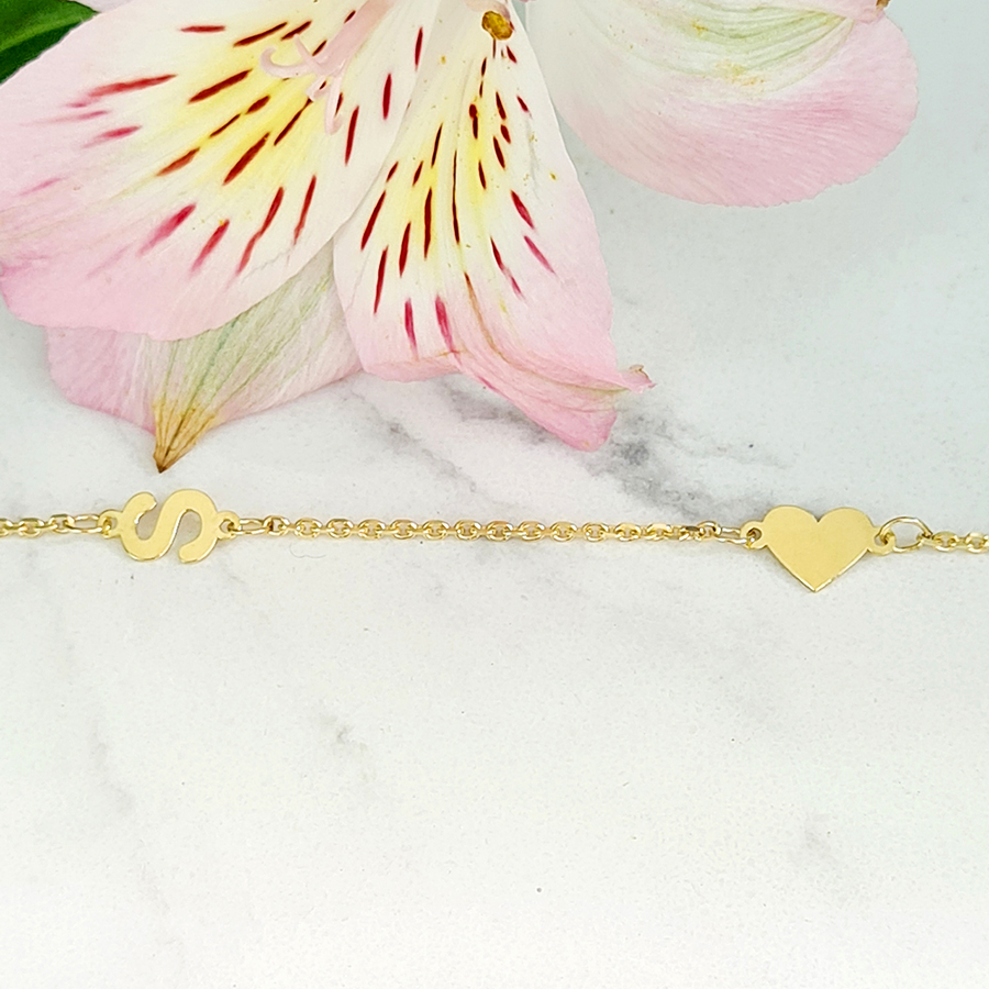 Úvod » PERSONALIZOVANÉ šperky → » Zlatý náramok s PÍSMENKOM a SRDIEČKOM -14k zlato