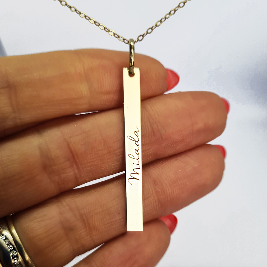 Dámy, ktoré milujú minimalizmus a čisté línie, sa zamilujú do tohto elegantného šperku. Prívesok palička v 14k zlate je vďaka svojmu tvaru vhodný na to, aby ste si naň nechali vygravírovať viac mien, prípadne krátky text. Potešte seba alebo svojich milovaných týmto dokonalým šperkom s osobným odkazom!