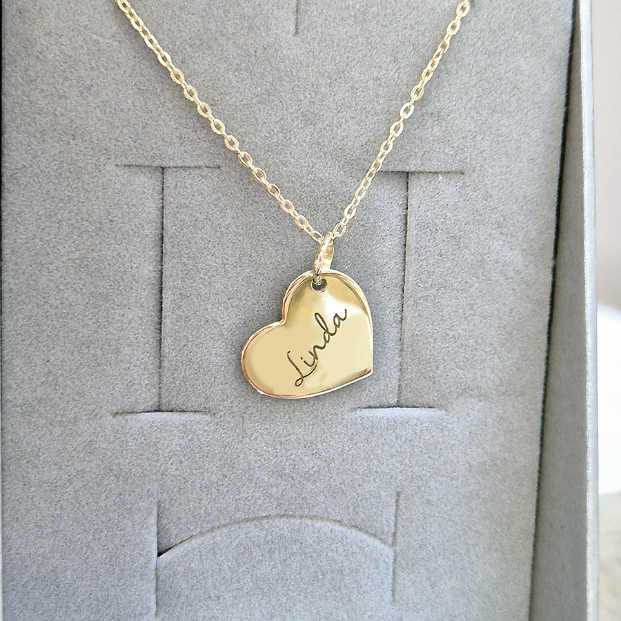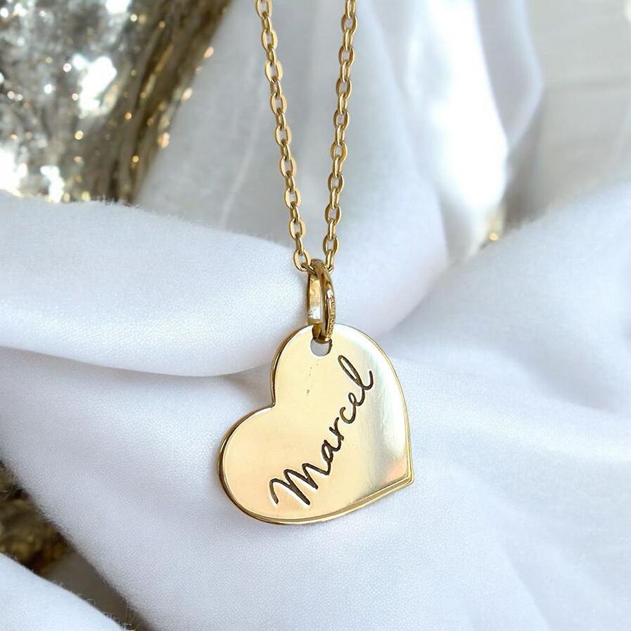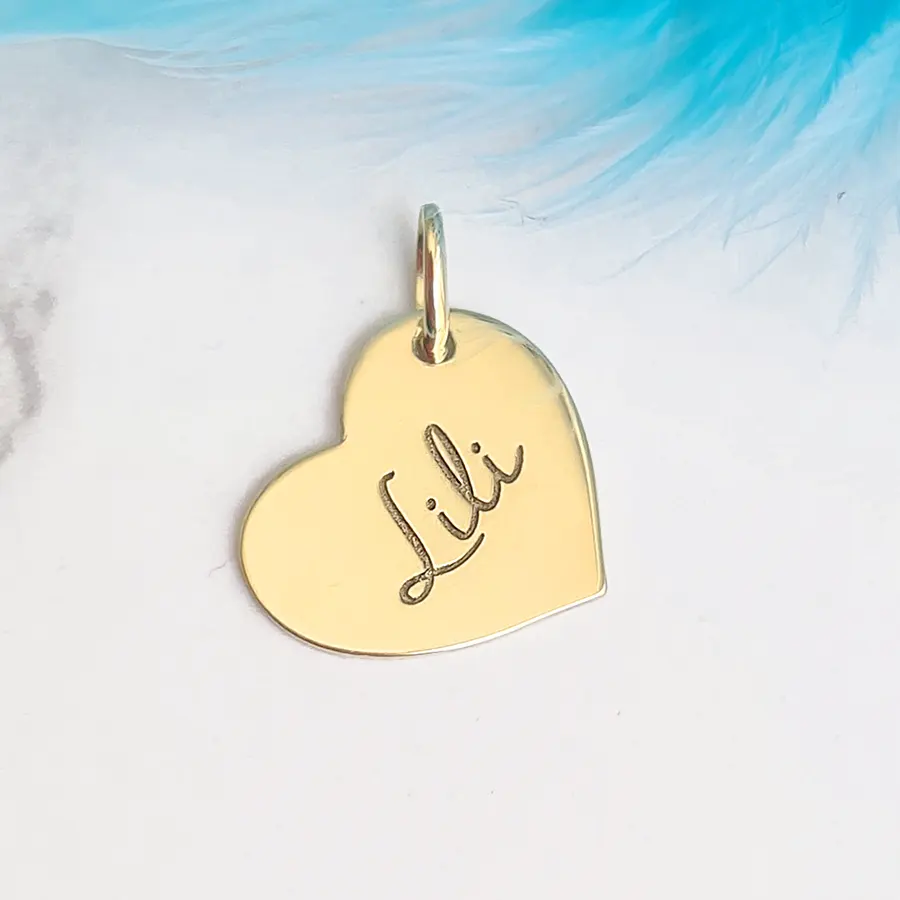 Úvod » Personalizované šperky → » Zlatý prívesok SRDCE s gravírovaním s MENOM -14k zlato