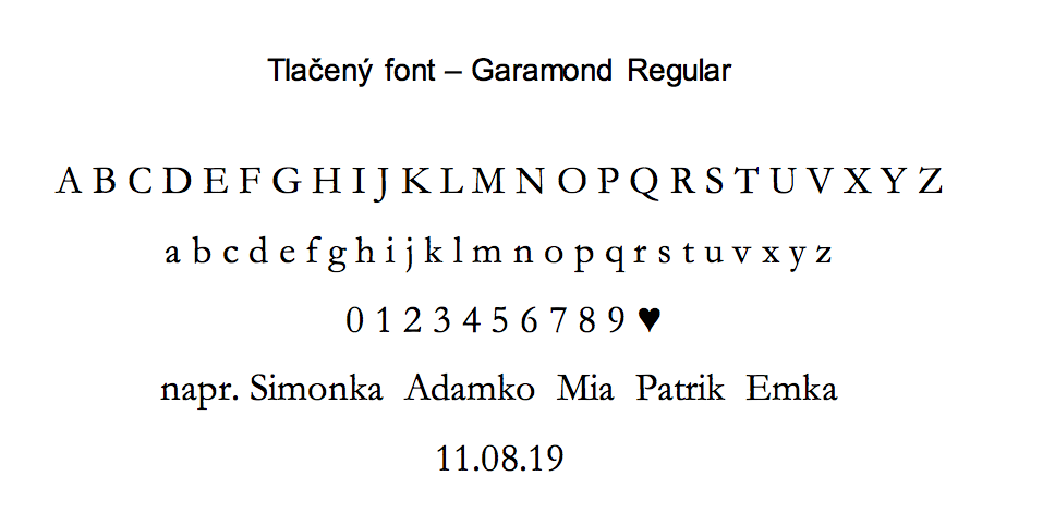 Mená alebo iniciály, ktoré budeme gravírovať napíšte prosím do poznámky pri objednávke. Máte možnosť výberu fontu gravírovania a to romantickejší a jemnejší písaný font Nella Sue alebo športovejší tlačený font Garamond. Ukážky oboch fontov nájdete tu alebo aj v obrázkoch.