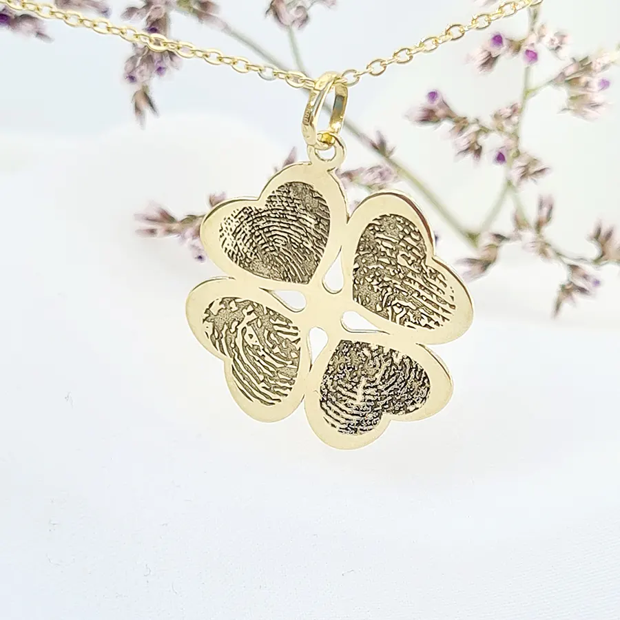 Úvod » Personalizované šperky → » Personalizované PRÍVESKY → » ŠTVORLÍSTOK - Clover → » Zlatý prívesok ŠTVORLÍSTOK s odtlačkami