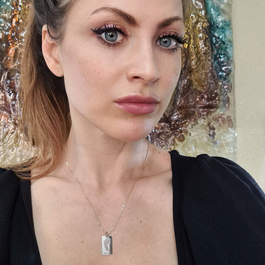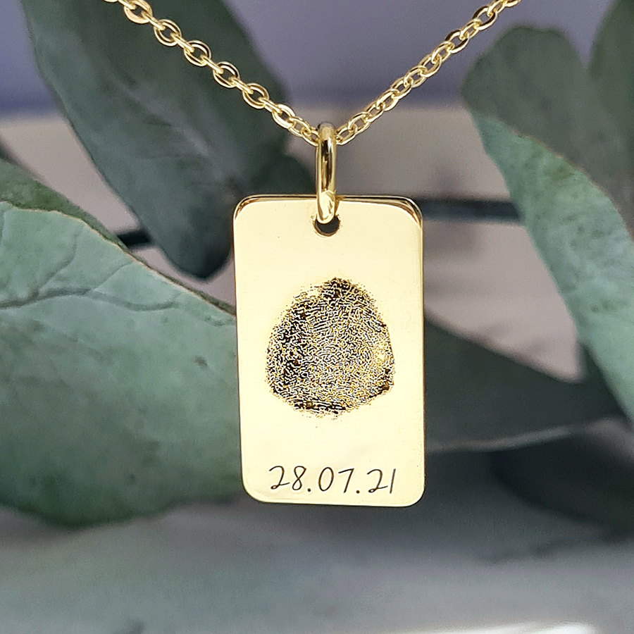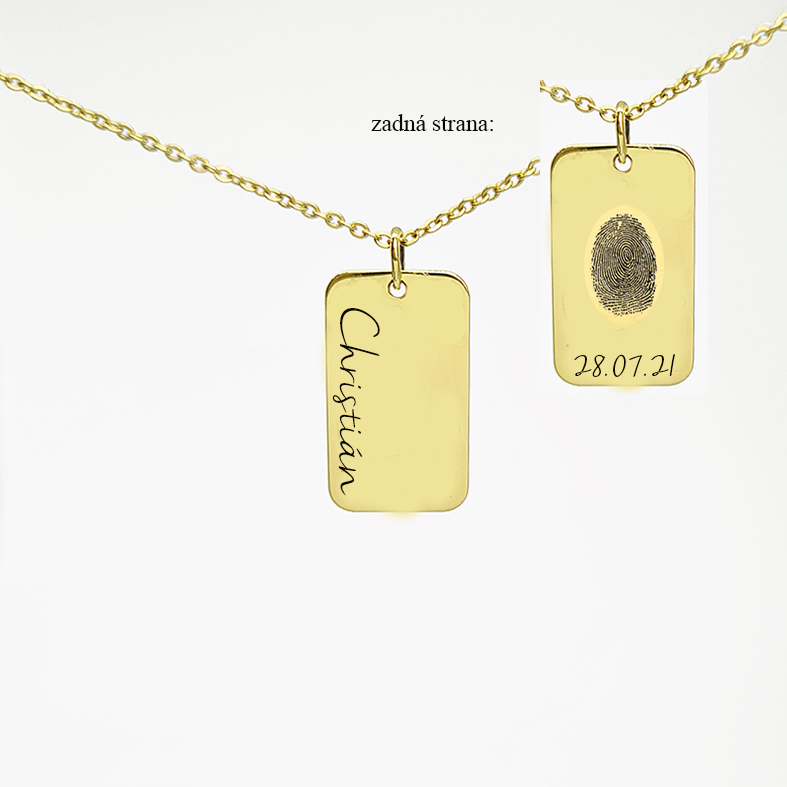 Zlatá platnička v štýle vojenskej známky s odtlačkom je veľmi osobný šperk pre mamičky aj oteckov. Veď viete, ako rýchlo ten čas letí, zvečnite na platničku odtlačok rúčky, alebo nôžky svojho dieťatka zakiaľ je ešte malé.