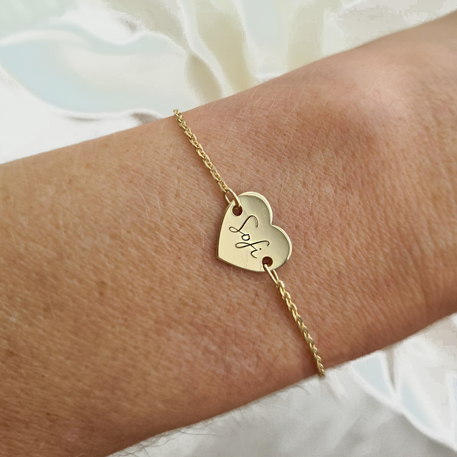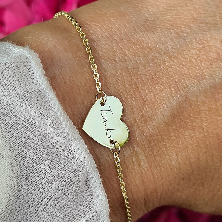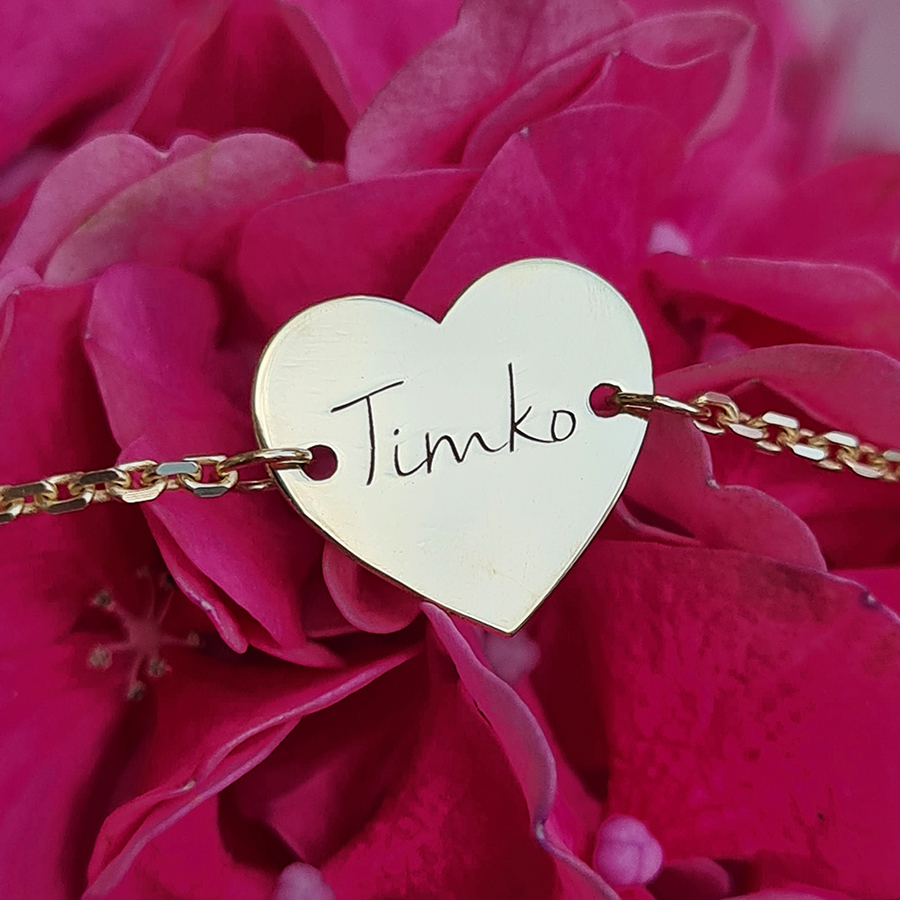 Úvod » Personalizované šperky → » Zlatý náramok SRDCE s menom