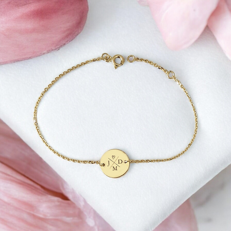 Úvod » PERSONALIZOVANÉ šperky → » Zlatý náramok KRUH s INICIÁLAMI RODINY -14k zlato