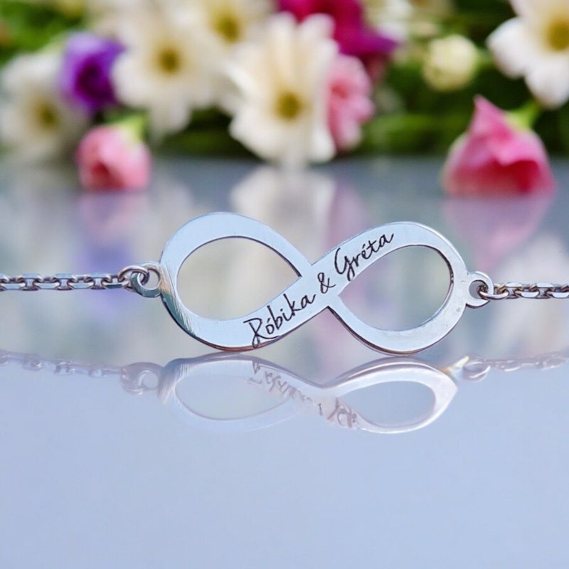 Zlatý náramok nekonečno na zlatej retiazke je jeden z najobľúbenejších šperkov. Nekonečno, alebo aj infinity, je vnímaný ako symbol nekonečnej lásky alebo priateľstva. Tento náramok je trendový a nadčasový.  Ideálny darček pre milovanú osobu. Na nekonečno si môžete vygravírovať meno Vášho dieťatka, manžela, alebo číslo, ktoré Vám nosí šťastie.